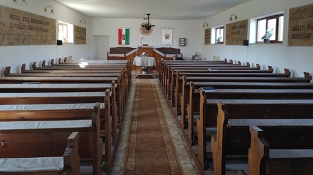 Bár a reformáció terjedésével az 1600-as évek végéig Ság is önálló gyülekezetként működött saját prédikátorral, a későbbi évszázadokban az ellenreformáció üldöztetéseinek hatására az ott élő hívek Pázmándfalura voltak kénytelenek átjárni istentiszteletekre, és csak az 1960-as években építhették fel ismét saját templomukat. Ekkor hatalmas összefogással a régi iskolaépületet átalakították és toronnyal is ellátták. Ennek megfelelően a Győrsági templom modernebbb kialakítású. A belső tér érdekessége az Apostoli hitvallás szövegének művészi megjelenítése a falakon, amely néhai Pataky Dénesné nagytiszteletű asszony alkotásaként készült Isten dicsőségére.